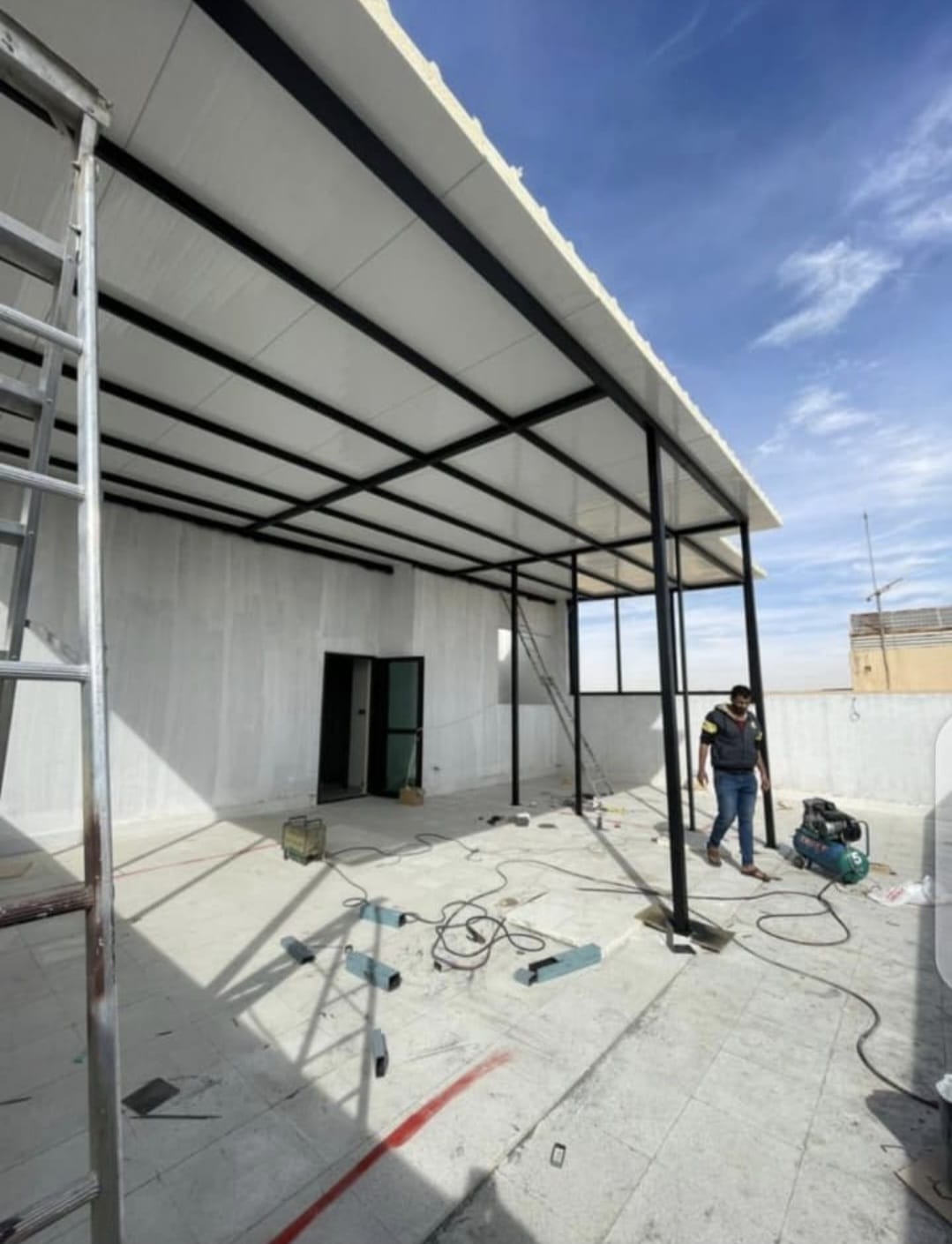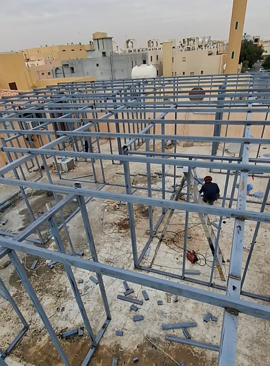 - تجهيز الهيكل المعدني: التأكد من استقامة الحديد ودهانه بمواد مضادة للصدأ.