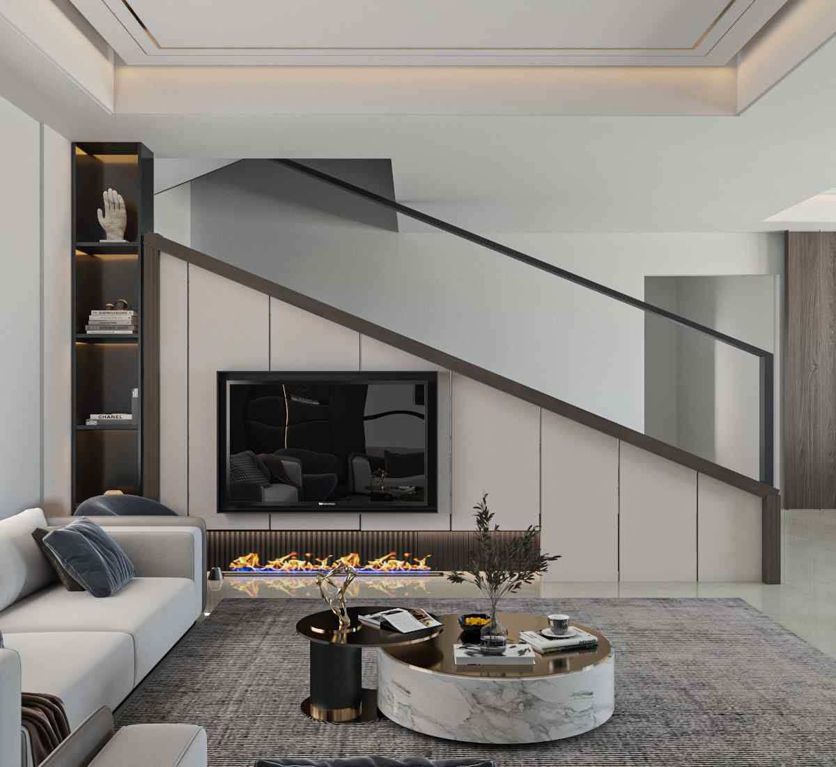 - الألوان والدهانات: الاعتماد على الألوان الهادئة والمحايدة مثل الأبيض، البيج، والرمادي كألوان أساسية، وإضافة لمسات لونية جريئة في قطع الأثاث أو الجدران المميزة.