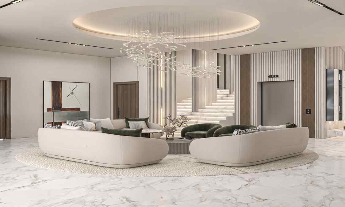 - الأرضيات: تفضيل البورسلان والرخام بتصاميم عصرية واسعة، أو خيارات الباركيه عالية الجودة في غرف النوم والمجالس لإضافة الدفء.