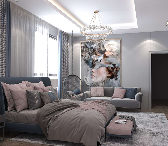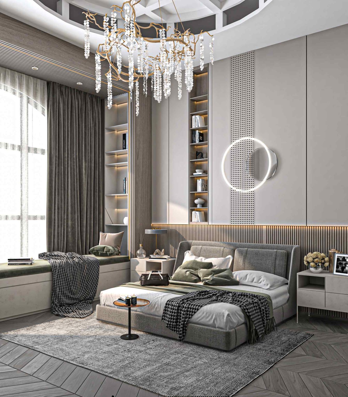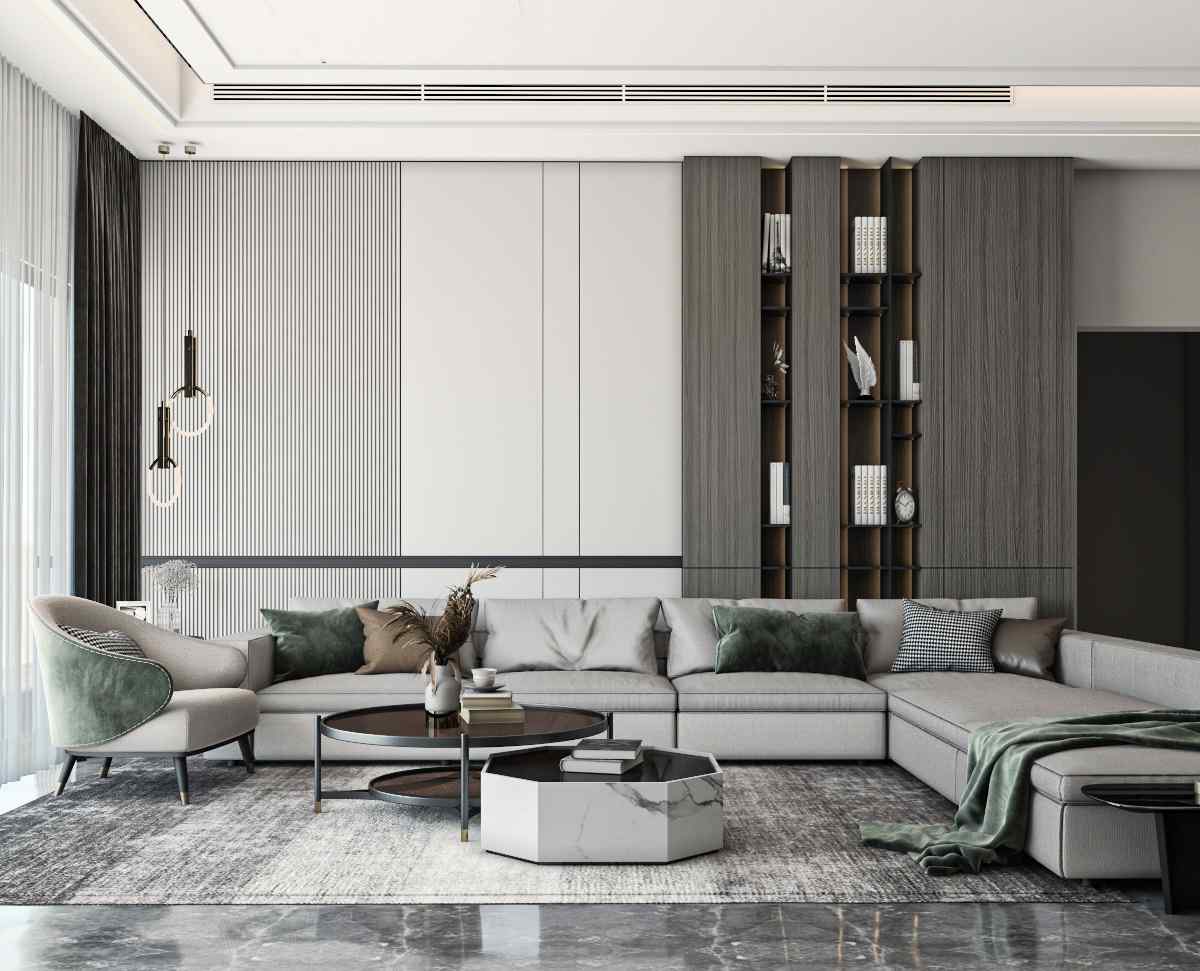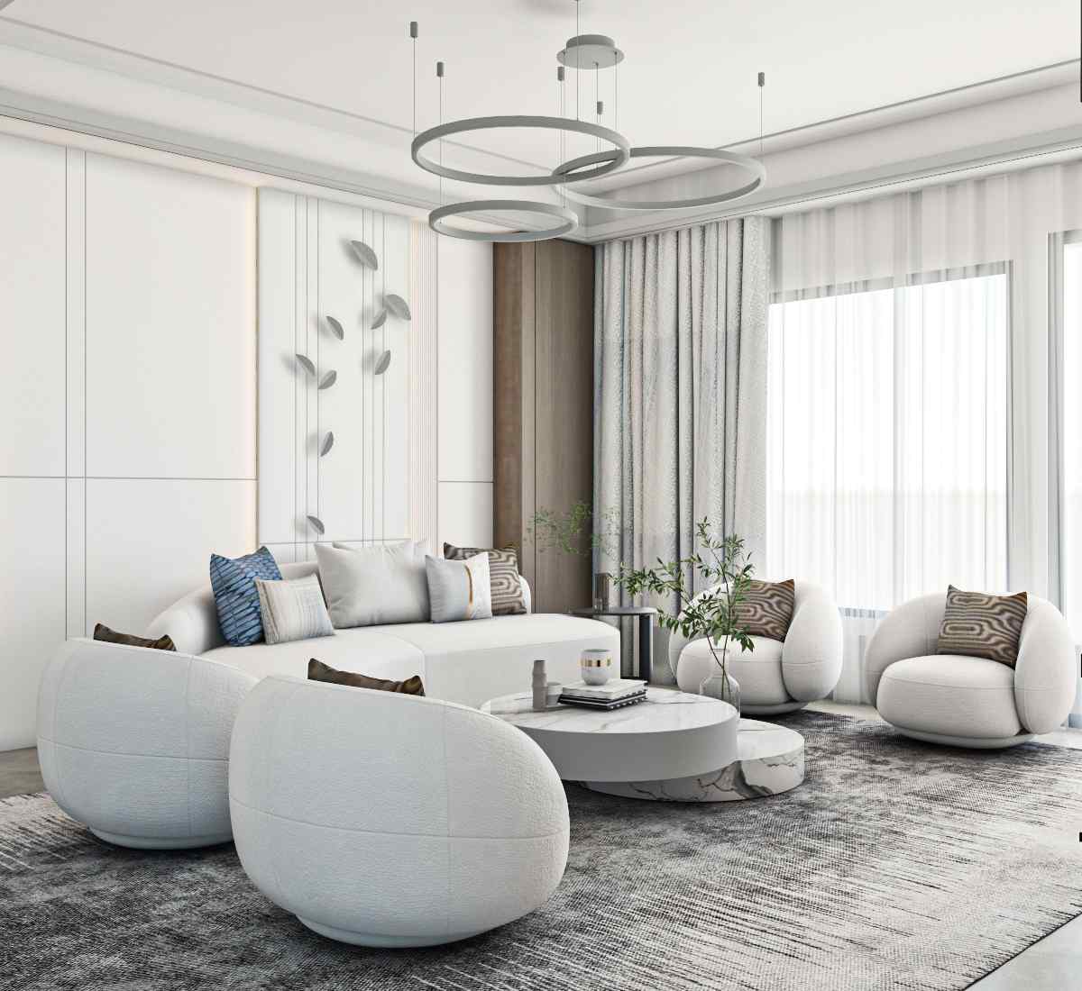 - الألوان والدهانات: الاعتماد على الألوان الهادئة والمحايدة مثل الأبيض، البيج، والرمادي كألوان أساسية، وإضافة لمسات لونية جريئة في قطع الأثاث أو الجدران المميزة.