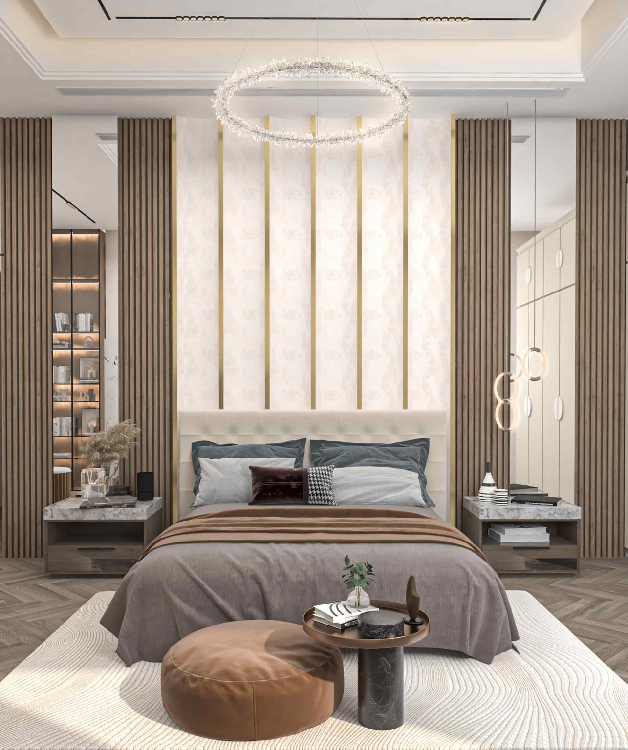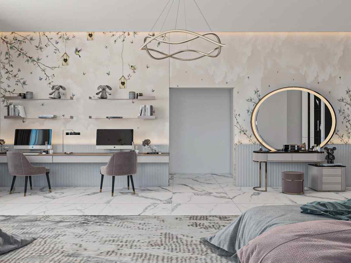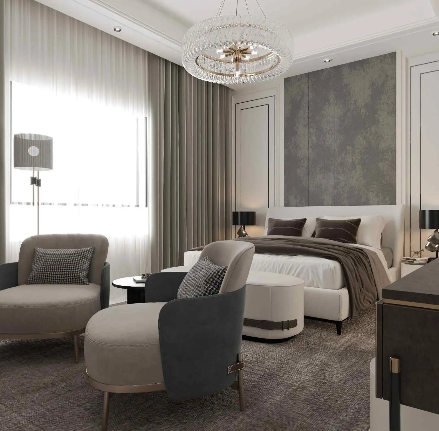 - الأرضيات: تفضيل البورسلان والرخام بتصاميم عصرية واسعة، أو خيارات الباركيه عالية الجودة في غرف النوم والمجالس لإضافة الدفء.