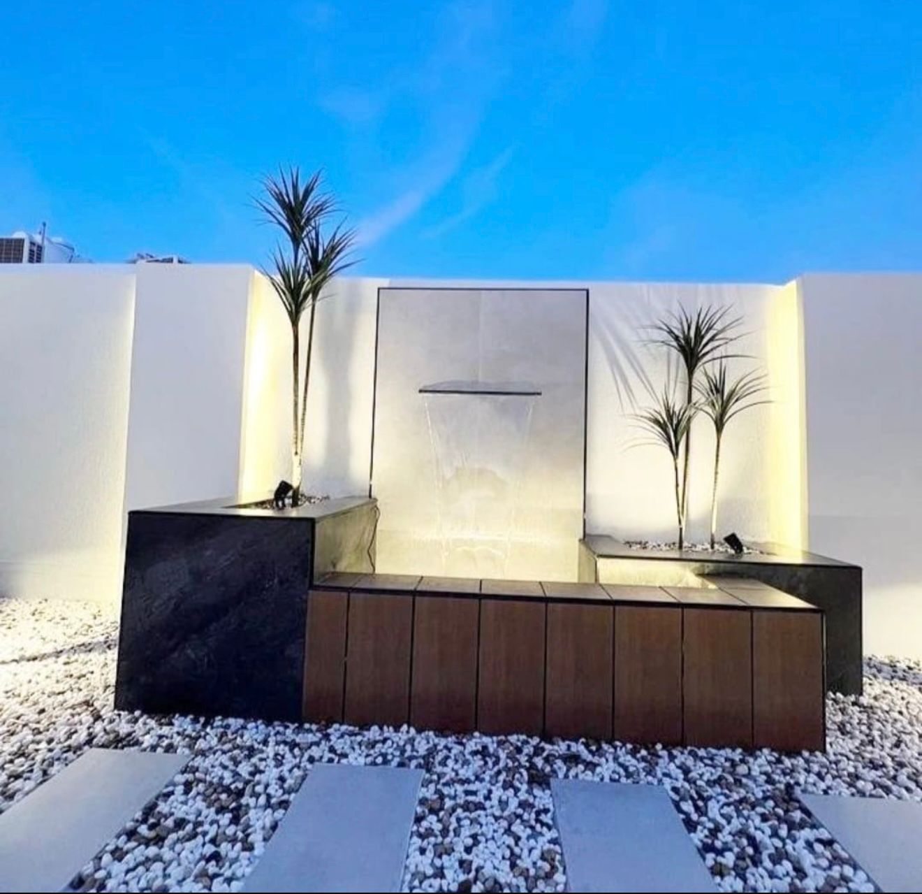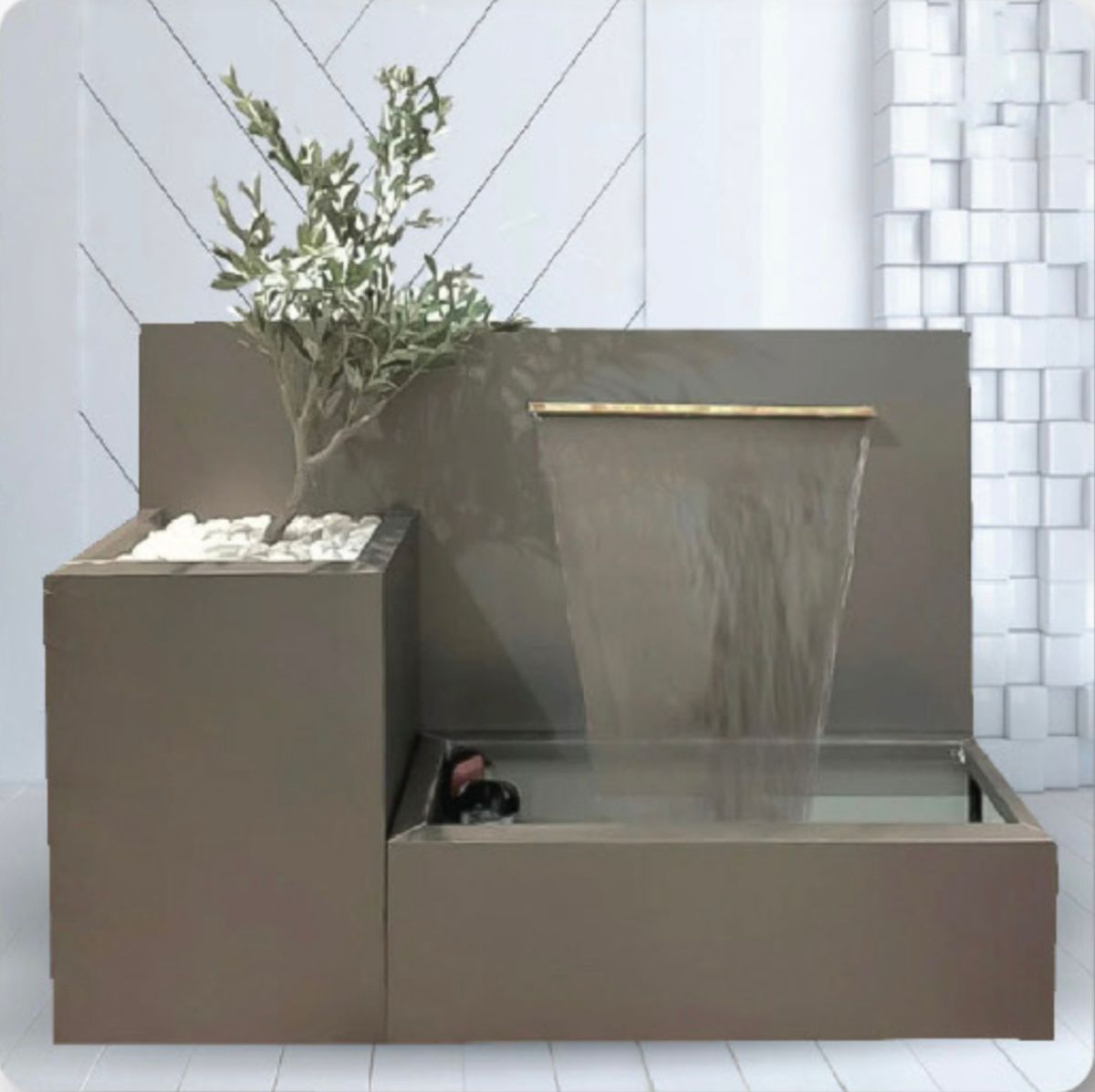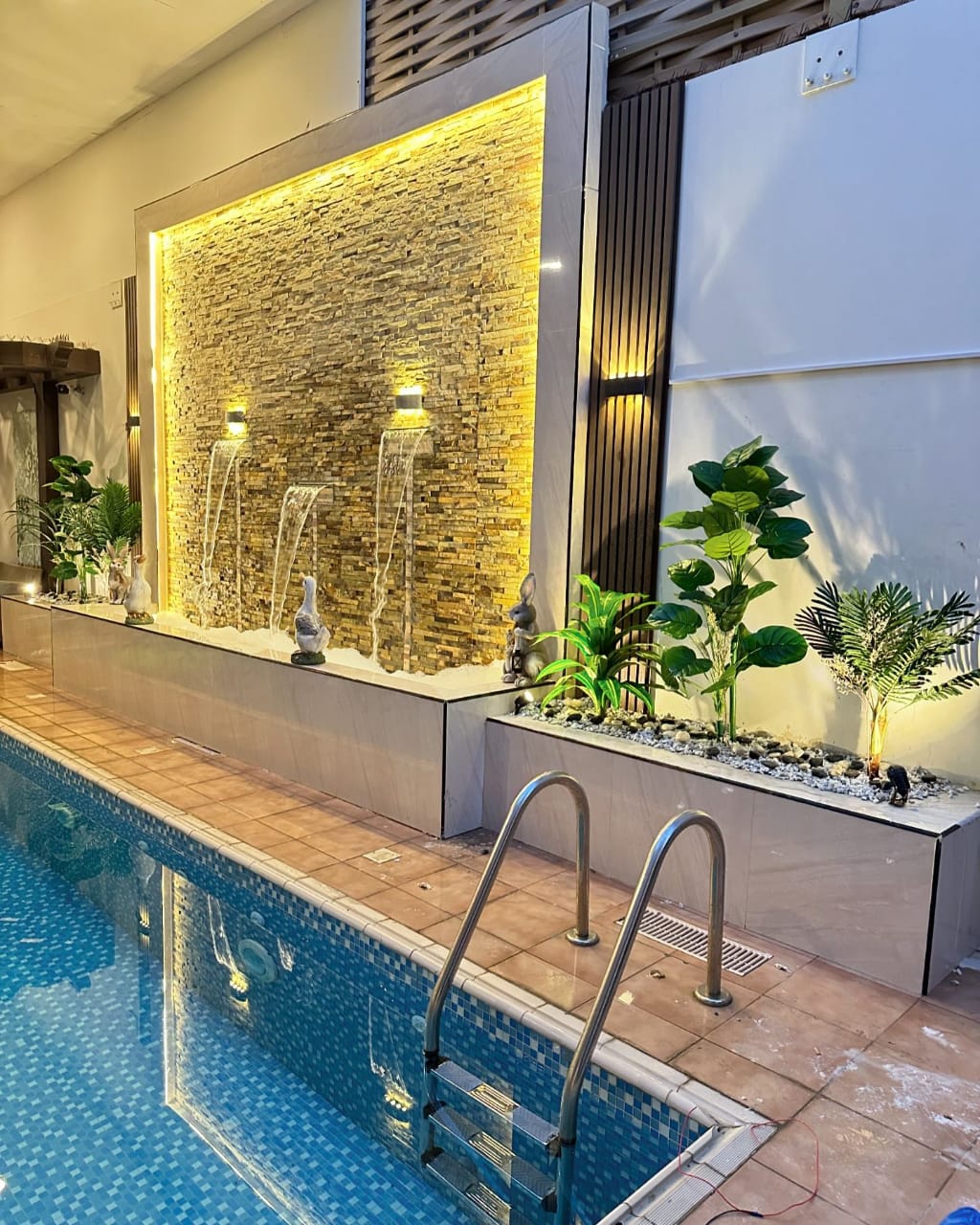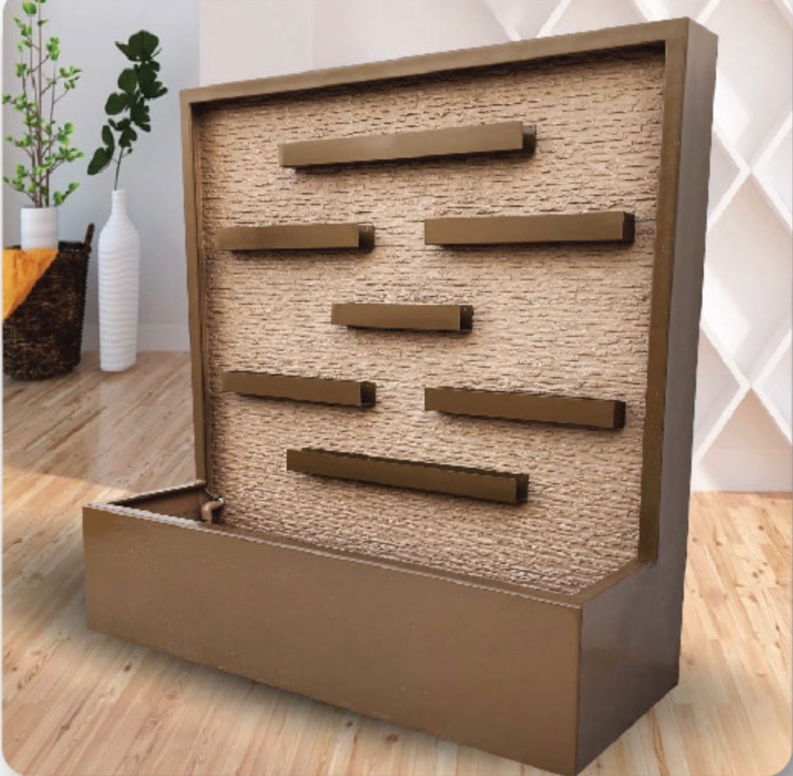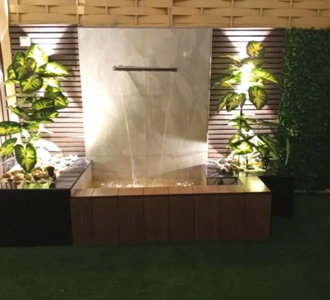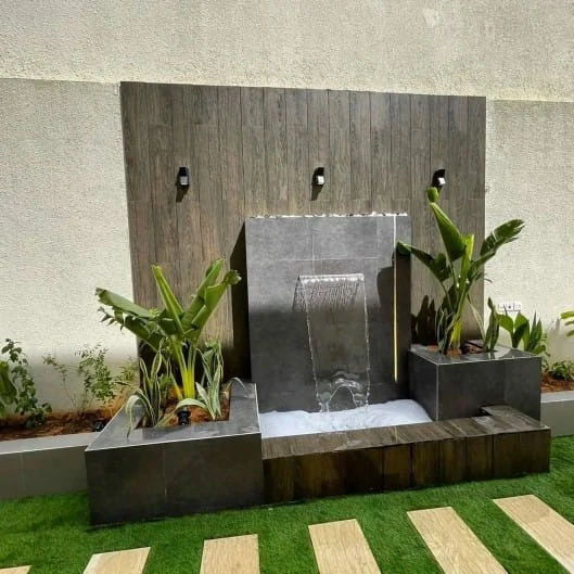 - نوافير وشلالات جدارية: تضفي لمسة من الهدوء والانتعاش وتقاوم جفاف الهواء.