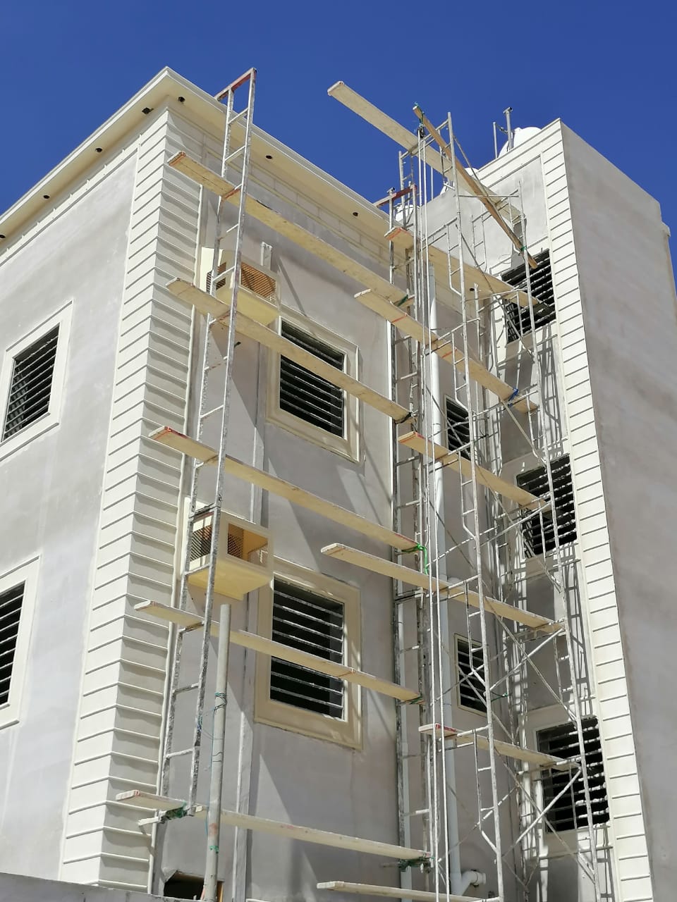 - معالجة الهيكل الإنشائي: يتم العمل على تقوية الهياكل الخرسانية ومعالجة أي تصدعات أو تلف ناتج عن صدأ الحديد، وهي خطوة حاسمة لضمان سلامة المبنى.