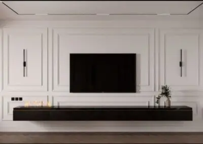 - 🔄 نظام الأسلاك المخفية: التصميم القوي والذكي لا يكتمل إلا بإخفاء جميع الأسلاك والكابلات داخل الجدار أو الألواح الجدارية، للحفاظ على مظهر نظيف وبسيط.