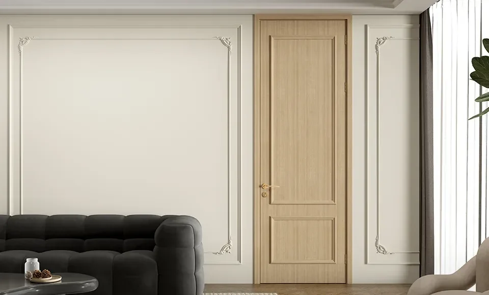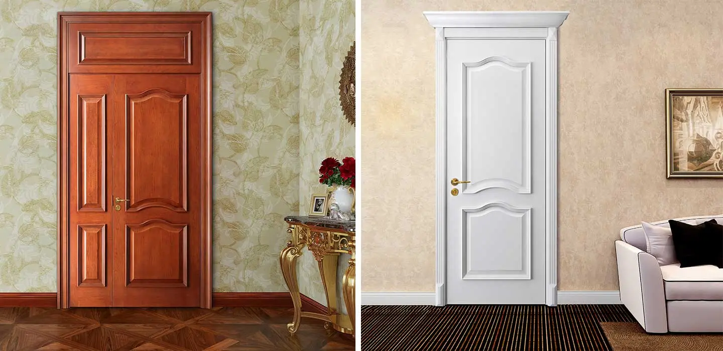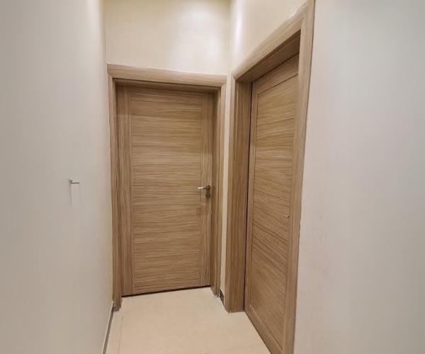- خشب اصلي: معروف بمتانته ونعومة ملمسه، وهو خيار مثالي للأبواب التي تتطلب دهانات “لاكيه” أو ألواناً فاتحة.
