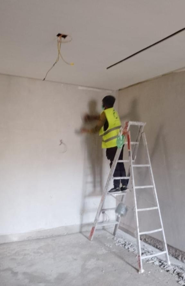 - إعادة الهيكلة وتعديل المساحات: هدم جدران غير إنشائية لفتح مساحات أوسع أو إضافة قواطع جبسية (جبسوم بورد) لتقسيم الغرف.